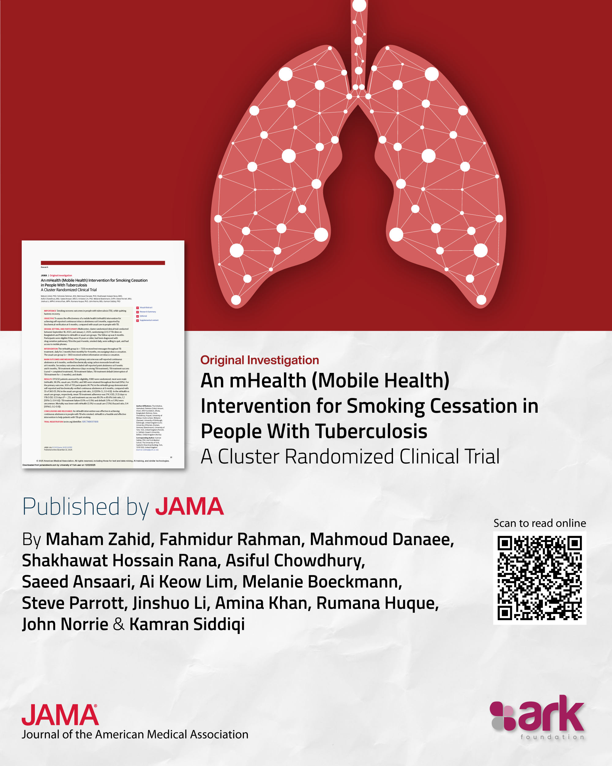 A new research article titled ‘An mHealth (Mobile Health) Intervention for Smoking Cessation in People With Tuberculosis: A Cluster Randomized Clinical Trial’ has been published in the Journal of the American Medical Association (JAMA).