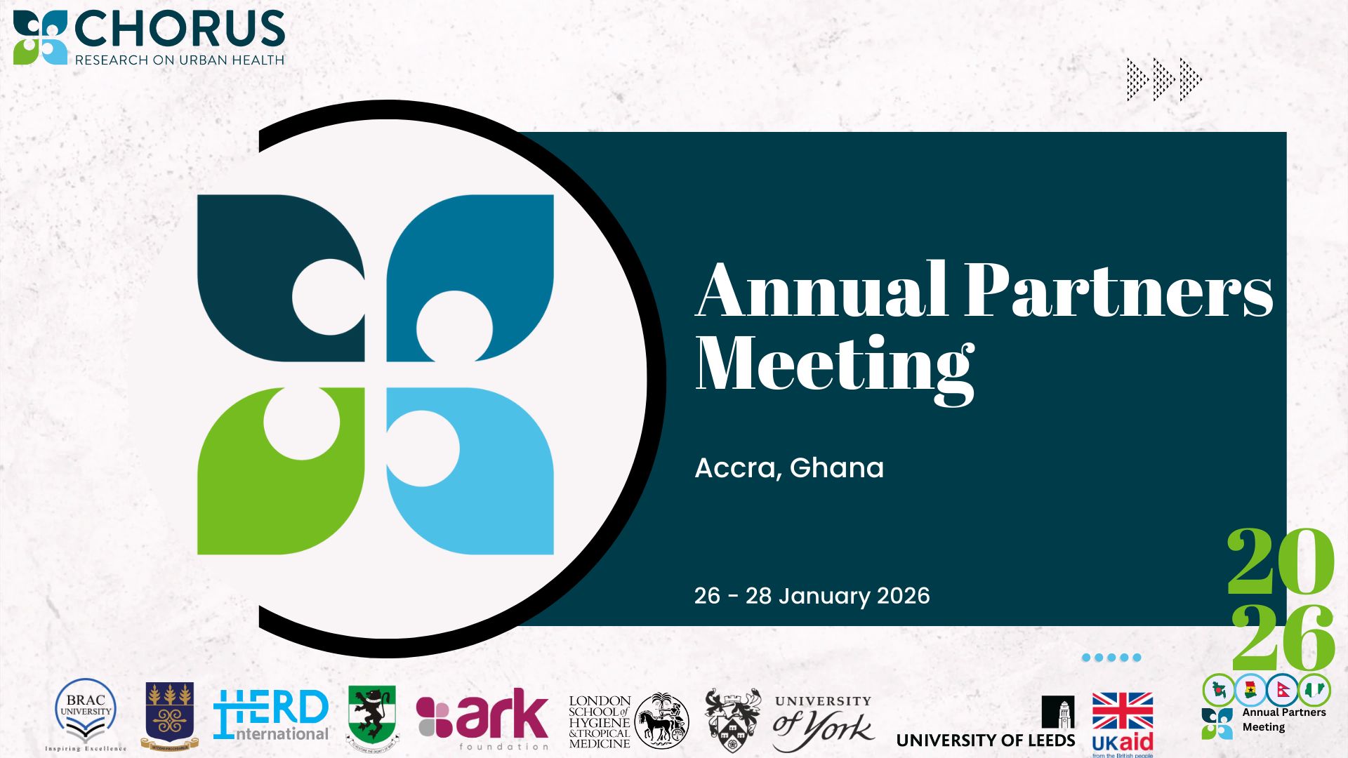 ARK Foundation is participating in the meeting as part of the CHORUS Urban Health Research Consortium, contributing to shared learning and collective action across diverse urban contexts.