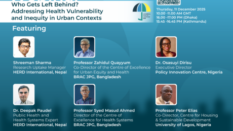 Thursday 11 December 2025 04.00 – 05.00 PM (BD Time) REGISTER FOR THE EVENT BY CLICKING HERE To mark Universal Health Coverage Day 2025, the CHORUS research consortium is bringing together experts from Bangladesh, Nepal, Nigeria and Ghana to share findings, lessons and insights on health vulnerabilities in urban contexts, and recommendations for health system interventions
