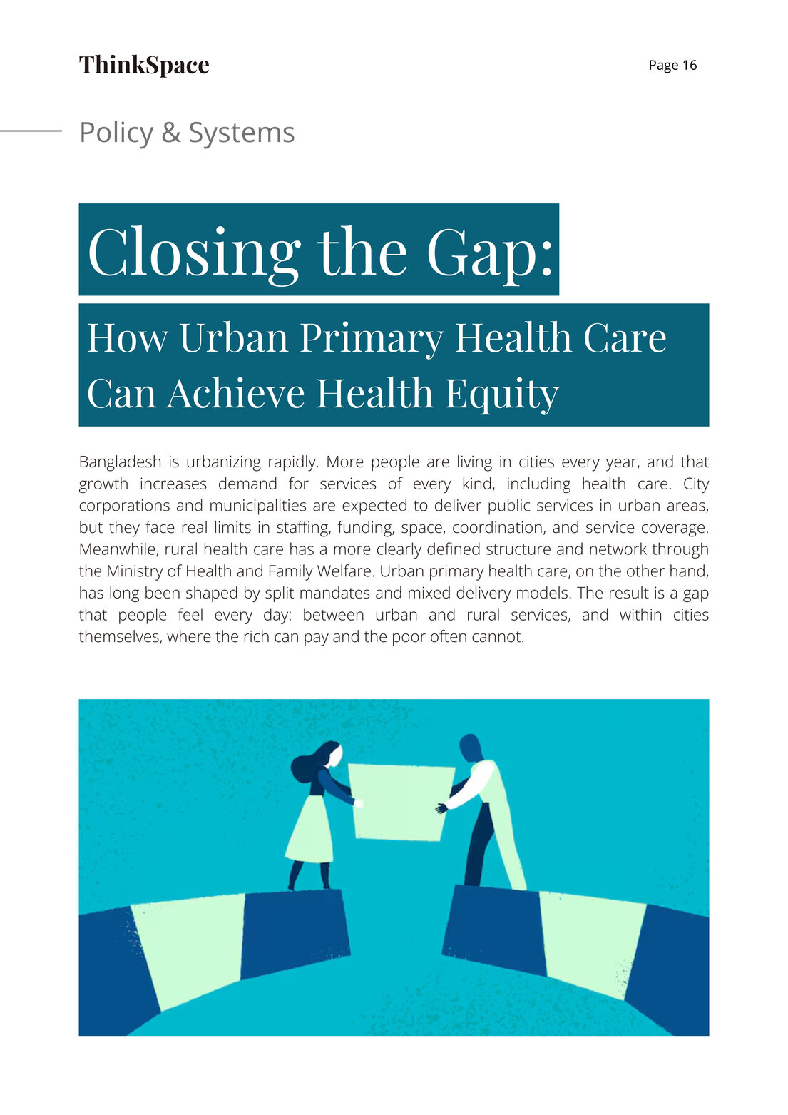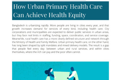 Bangladesh is urbanizing rapidly. More people are living in cities every year, and that growth increases demand for services of every kind, including health care. City corporations and municipalities are expected to deliver public services in urban areas, but they face real limits in staffing, funding, space, coordination, and service coverage. Meanwhile, rural health care has a more clearly defined structure and network through the Ministry of Health and Family Welfare. Urban primary health care, on the other hand, has long been shaped by split mandates and mixed delivery models. The result is a gap that people feel every day: between urban and rural services, and within cities themselves, where the rich can pay and the poor often cannot.
