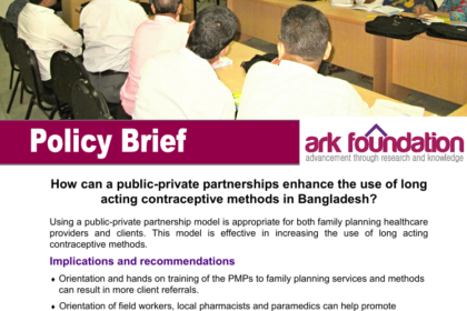 To reduce fertility rates, the government of Bangladesh has started promoting the use of LACMs. However, although the use of short-term modern contraceptive methods have increased, the relative use of LACMs has declined. The decline in the use of LACMs is largely due to a shortage of trained providers, poor quality healthcare services in the public sector, no collaboration between public and private sector healthcare providers, social norms, misconceptions of the clients and lack of promotional efforts by the private medical practitioners.