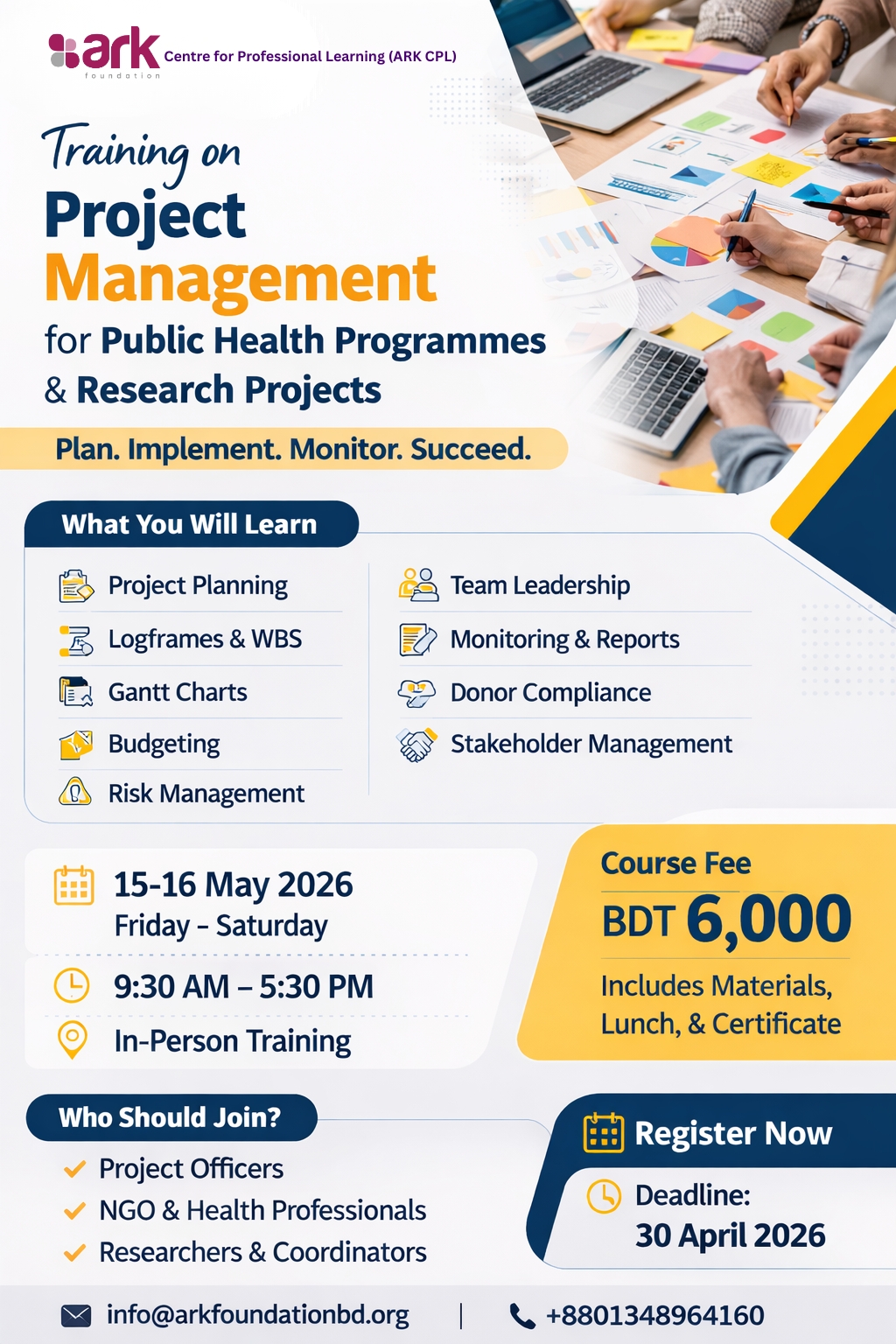 - Course Fee: BDT 6,000 (Includes training materials, lunch, refreshments, and certificate).