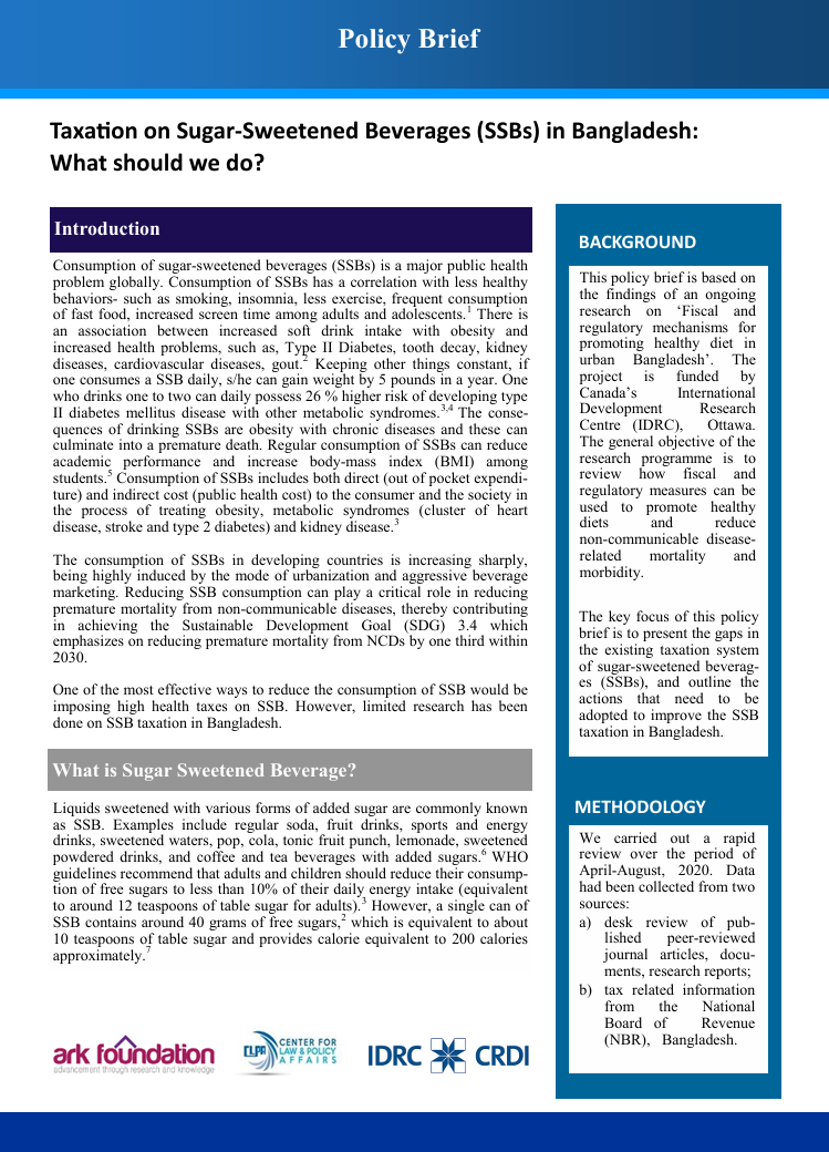 Taxation on Sugar-Sweetened Beverages (SSBs) in Bangladesh: What should we do?