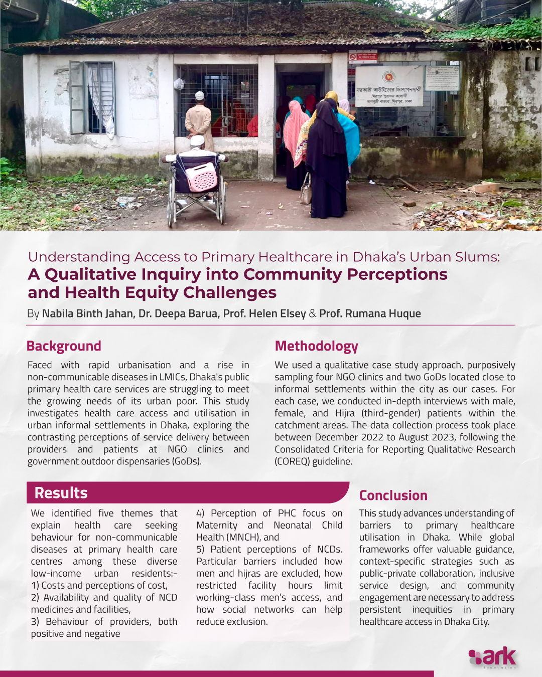 • 𝐋𝐨𝐜𝐚𝐥 𝐑𝐞𝐚𝐥𝐢𝐭𝐢𝐞𝐬 𝐚𝐧𝐝 𝐇𝐞𝐚𝐥𝐭𝐡 𝐂𝐚𝐫𝐞 𝐂𝐡𝐨𝐢𝐜𝐞𝐬: 𝐂𝐨𝐦𝐦𝐮𝐧𝐢𝐭𝐲 𝐏𝐞𝐫𝐬𝐩𝐞𝐜𝐭𝐢𝐯𝐞𝐬 𝐟𝐨𝐫 𝐄𝐪𝐮𝐢𝐭𝐚𝐛𝐥𝐞 𝐔𝐫𝐛𝐚𝐧 𝐏𝐫𝐢𝐦𝐚𝐫𝐲 𝐇𝐞𝐚𝐥𝐭𝐡 𝐂𝐚𝐫𝐞 𝐢𝐧 𝐃𝐡𝐚𝐤𝐚, 𝐁𝐚𝐧𝐠𝐥𝐚𝐝𝐞𝐬𝐡