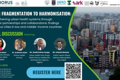 Chaired by Prof. Helen Elsey, CHORUS Co-Director from the University of York, the discussion brought together public health leaders from Bangladesh, Ghana, Nepal, and Nigeria. Dr. Khaleda Islam, former Director of Primary Healthcare at DGHS Bangladesh, Dr. Andrews Ayim of Ghana Health Services, Mr. Subash Bastola from Pokhara Metropolitan City in Nepal, and Mr. Ikedichukwu Emmanuel Ayogu from Enugu State Primary Healthcare Development Agency in Nigeria shared their experiences on how linking formal, private, and informal providers can improve health access for urban poor populations.