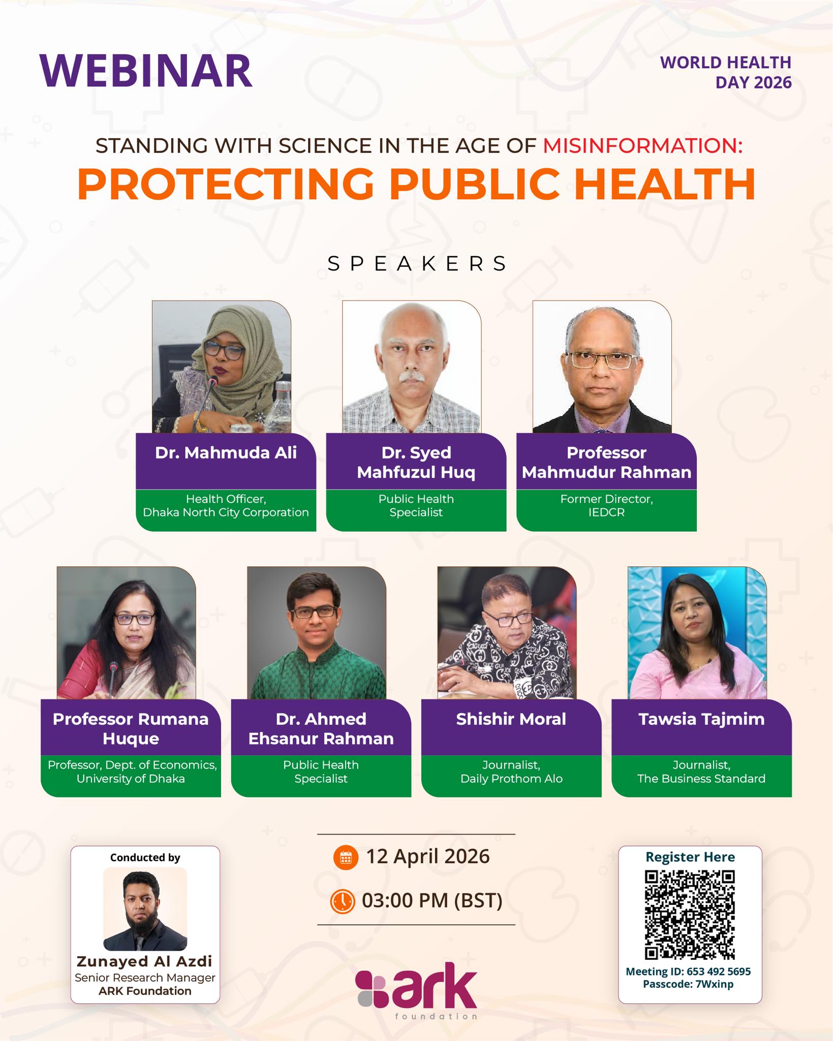 ย Join us for an insightful discussion: โ๐๐ญ๐๐ง๐๐ข๐ง๐ ๐ฐ๐ข๐ญ๐ก ๐๐๐ข๐๐ง๐๐ ๐ข๐ง ๐ญ๐ก๐ ๐๐ ๐ ๐จ๐ ๐๐ข๐ฌ๐ข๐ง๐๐จ๐ซ๐ฆ๐๐ญ๐ข๐จ๐ง: ๐๐ซ๐จ๐ญ๐๐๐ญ๐ข๐ง๐ ๐๐ฎ๐๐ฅ๐ข๐ ๐๐๐๐ฅ๐ญ๐ก.โ The session will bring together public health experts, researchers, policymakers, media professionals, and citizens to discuss how misinformation is affecting health in Bangladesh.