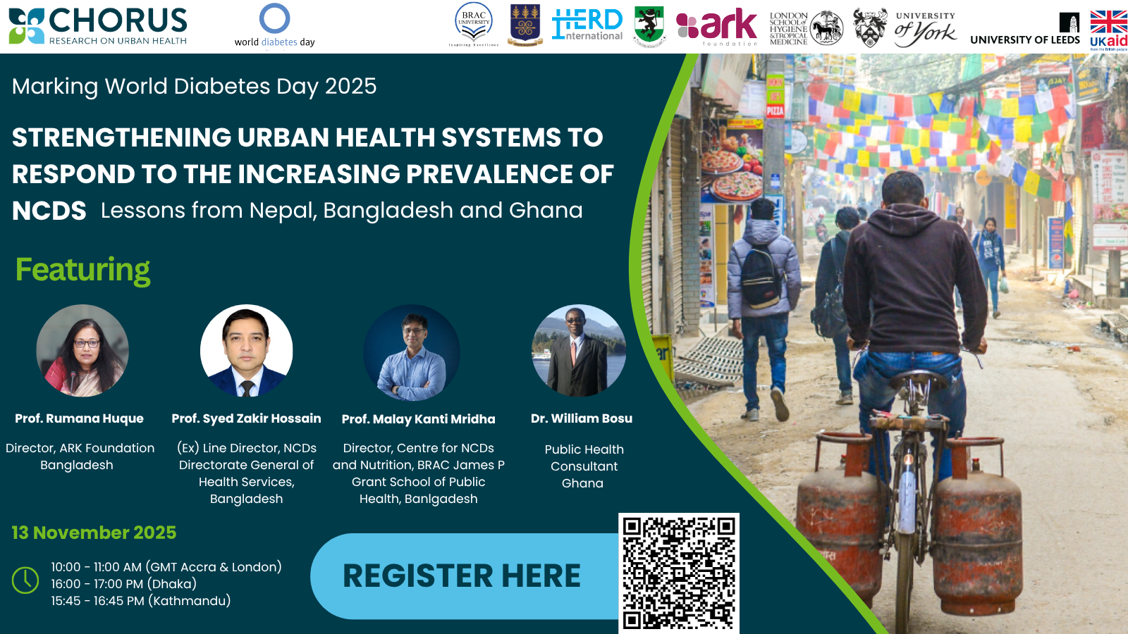 To mark World Diabetes Day 2025, the CHORUS urban health research consortium is bringing together researchers, stakeholders and policymakers from Bangladesh, Nepal and Ghana to share findings, lessons and insights on strengthening urban health systems to respond to the rising crisis in Non-Communicable Diseases (NCDs).